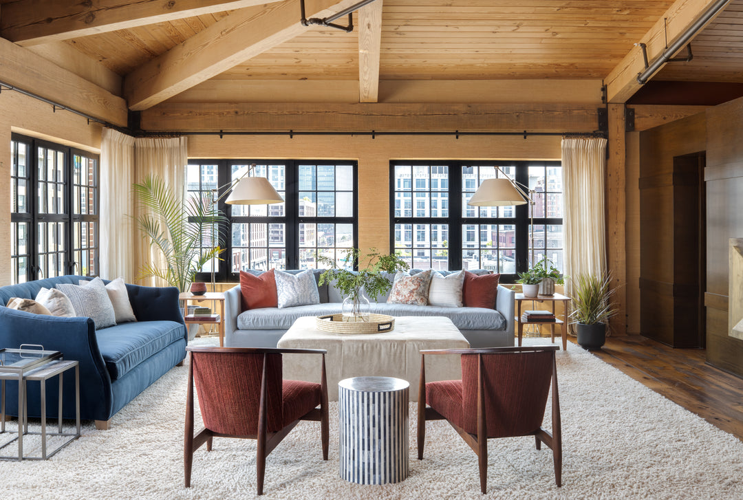 Carefully dyed raffia fiber and sweet grass storage basket designed by Interior Designer Laura Hodges, in Baltimore, MD.